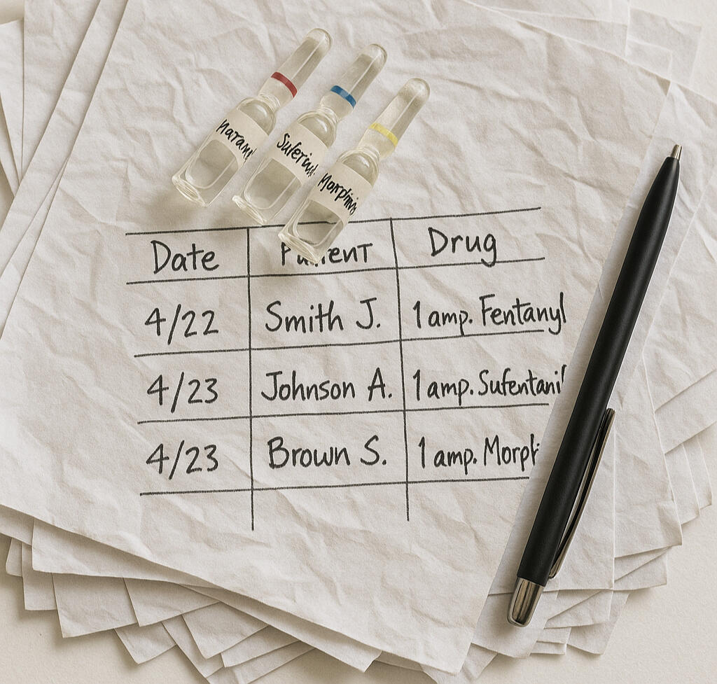 Controlled substances: e-sign administrations, reconcile counts, monthly PDF reports.